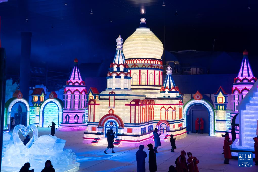 7月6日,游客在哈尔滨冰雪大世界室内冰雪馆内游玩。