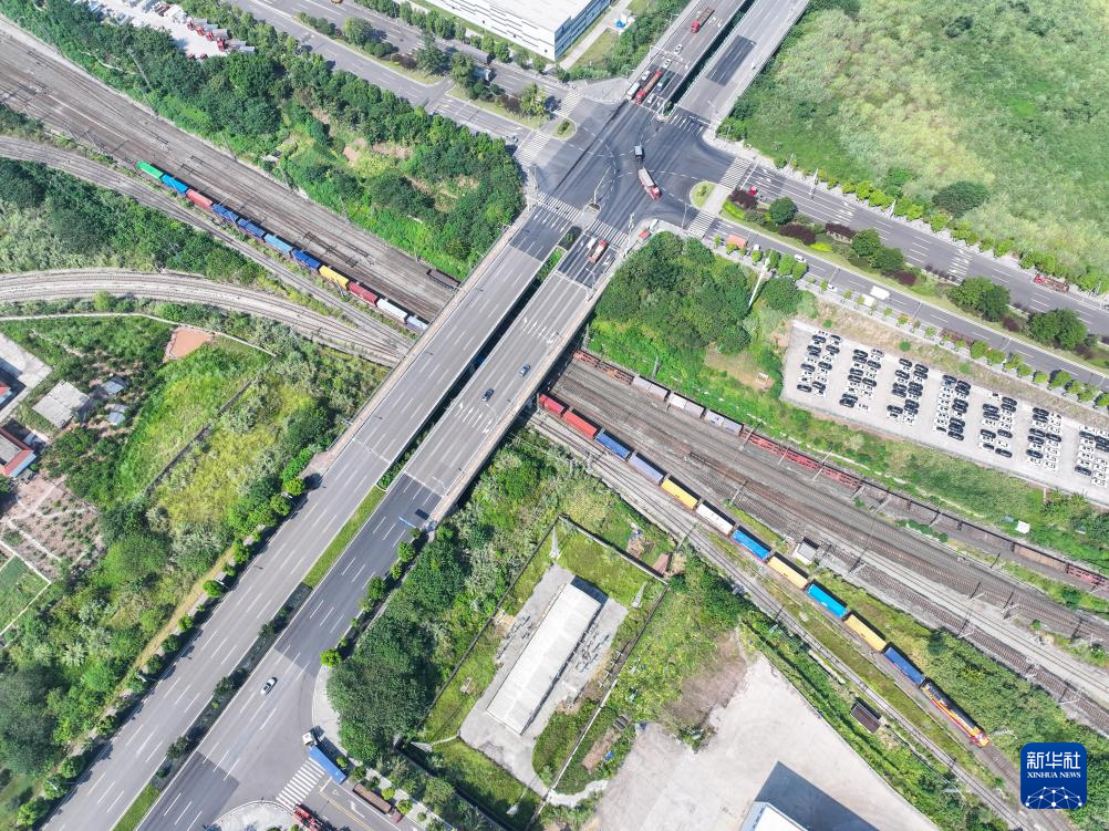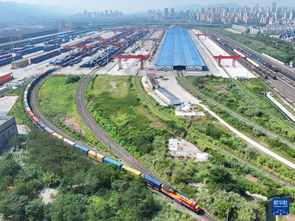 8月20日,首趟“渝深港图定班列”在重庆团结村站顺利发车(无人机照片)。