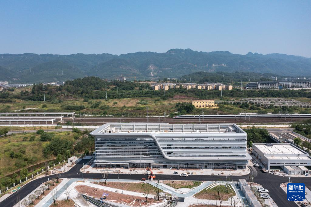 这是8月21日在重庆市永川区拍摄的渝昆高铁永川南站综合交通枢纽及配套设施项目施工现场(无人机照片)。