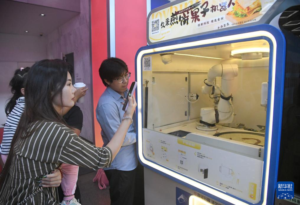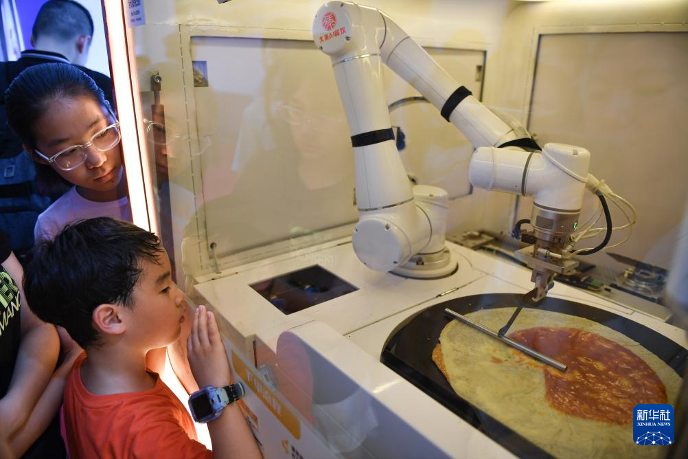 8月21日在2024世界机器人大会现场拍摄的煎饼果子机器人。