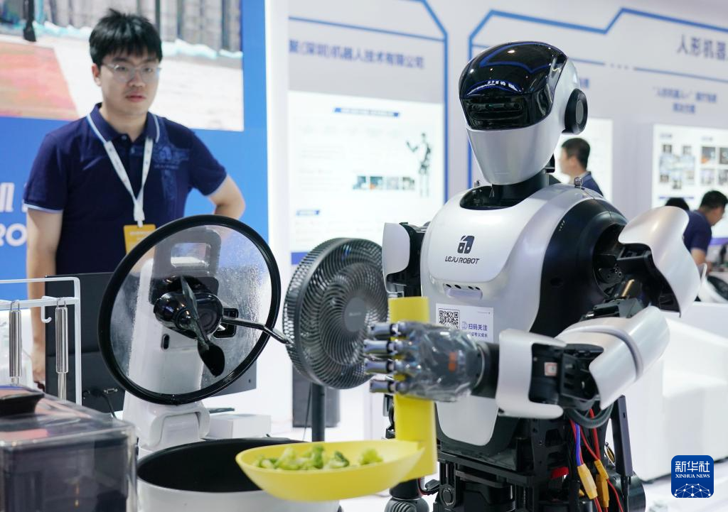 8月21日,一款人形机器人在2024世界机器人大会展示炒菜。