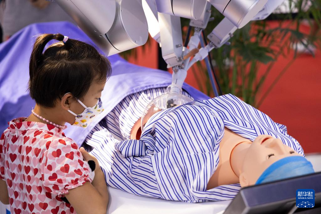 8月21日,在2024世界机器人大会现场,参观者被手术机器人吸引。