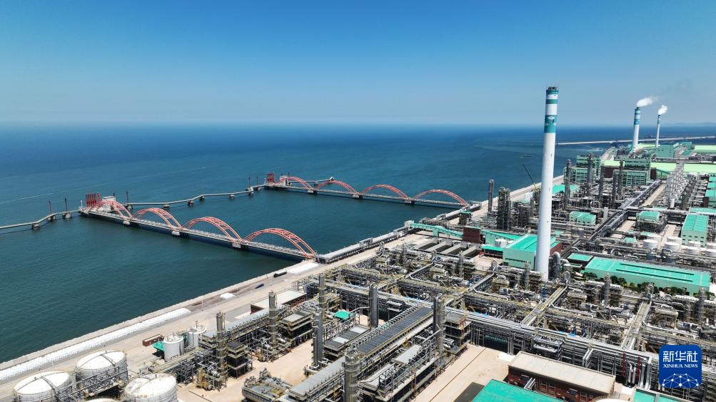 这是位于大连长兴岛的恒力石化产业园,园区新建的恒力新材料科创园包含年产260万吨功能性聚酯、160万吨高性能树脂等项目,可将基础化工品转化为高端化工及新材料产品(2024年6月16日摄,无人机照片)。