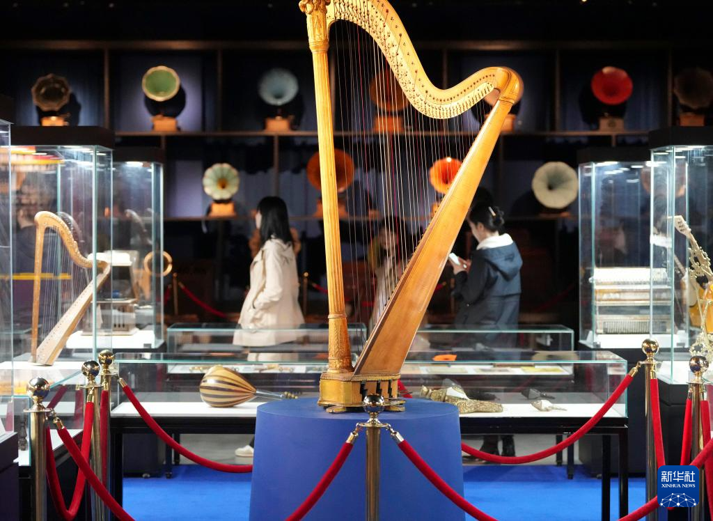 在大连的东方威尼斯水城,游人在世界音乐文化博物馆内参观(2024年4月16日摄)。