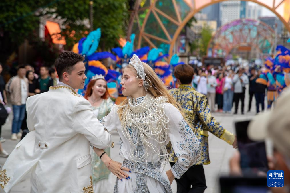 游客在大连俄罗斯风情街欣赏表演(2024年5月25日摄)。