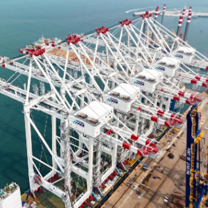该批岸桥吊具下起升重量75吨、前伸距72米、轨上起升高度57.5米,属于超大型岸桥,可满足当前世界最大集装箱运输船的装卸需求。