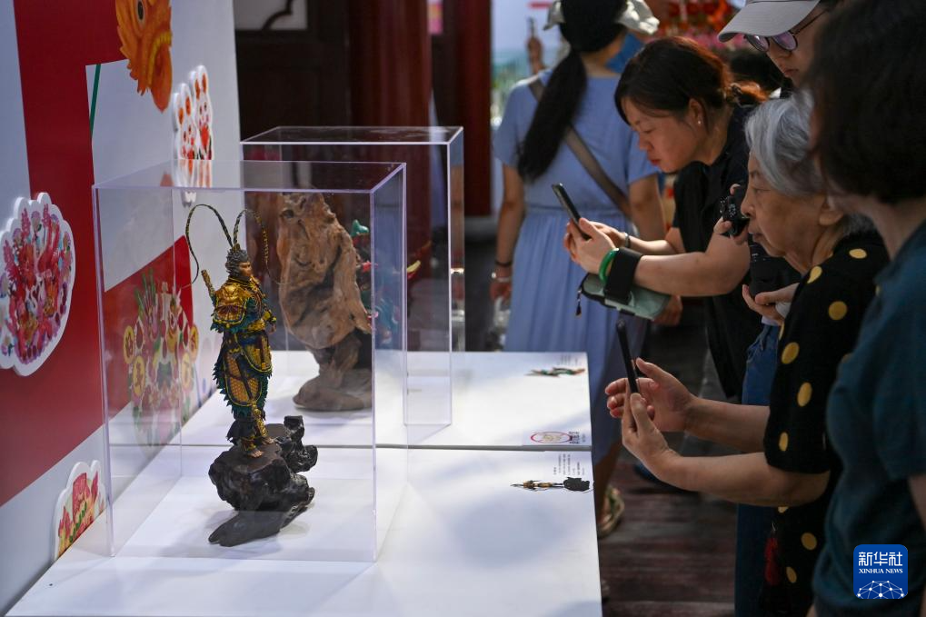 8月24日,游客在展览现场拍摄孙悟空造型面塑作品。