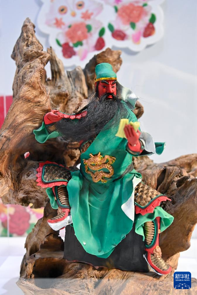 这是在现场展出的关公造型面塑作品(8月24日摄)。