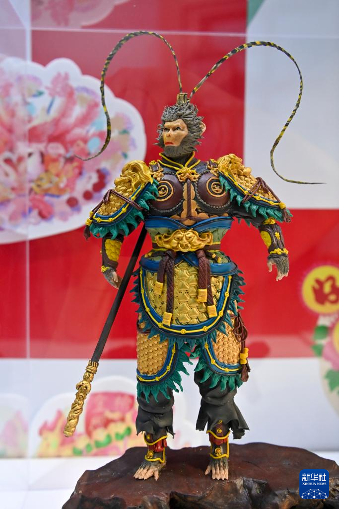 这是在现场展出的孙悟空造型面塑作品(8月24日摄)。
