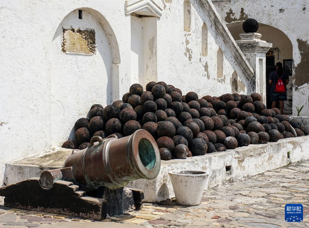 这是6月19日在加纳海岸角奴隶堡拍摄的遗留炮筒和炮弹。