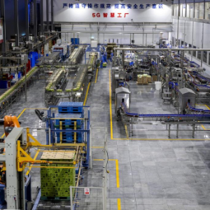 这是盼盼食品集团的5G智慧工厂饮料自动化生产车间(8月23日摄)。盼盼食品集团年营收81亿元,产品远销50多个国家和地区。