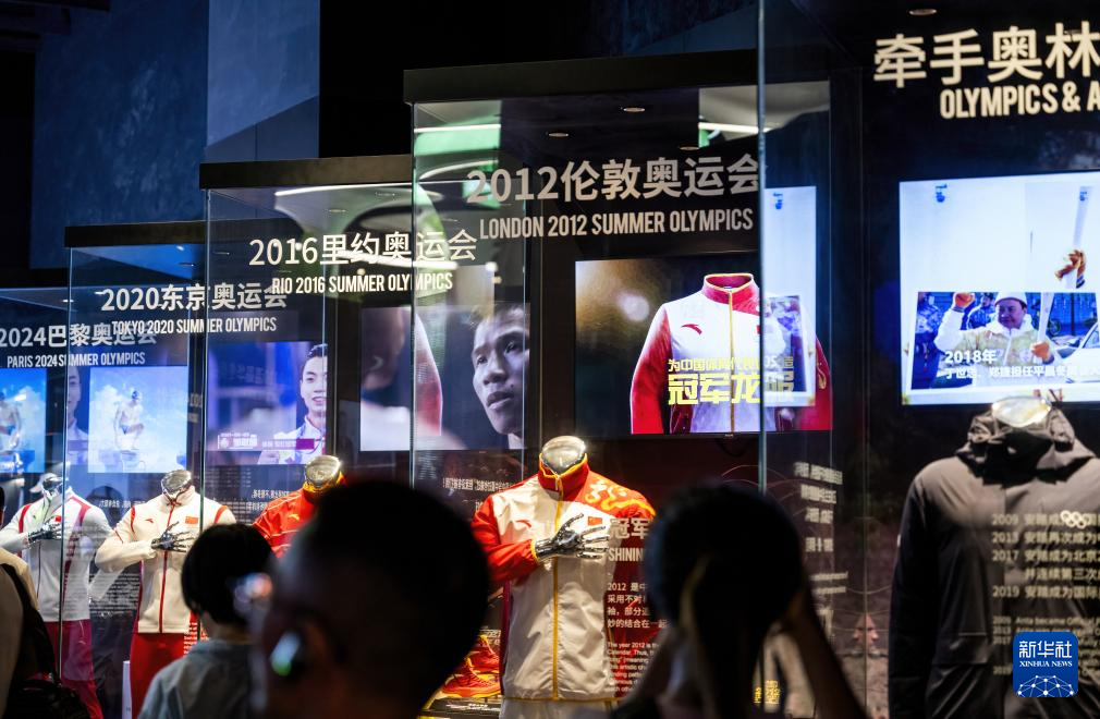 人们在安踏集团设立的博物馆和数字化智慧运动综合体——安踏982创动空间参观(8月22日摄)。