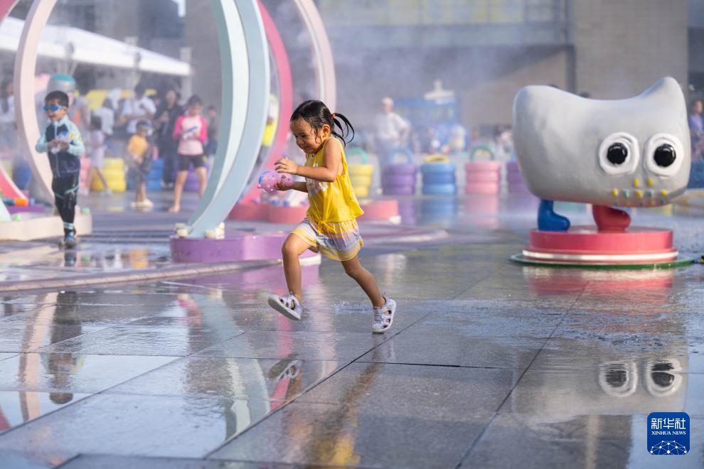8月24日,小朋友在“童乐日”艺术嘉年华泡沫派对上游玩。
