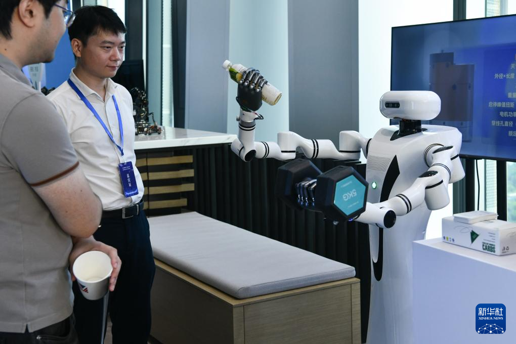 8月26日,机器人展示如何拿起搅拌棒搅拌饮料。