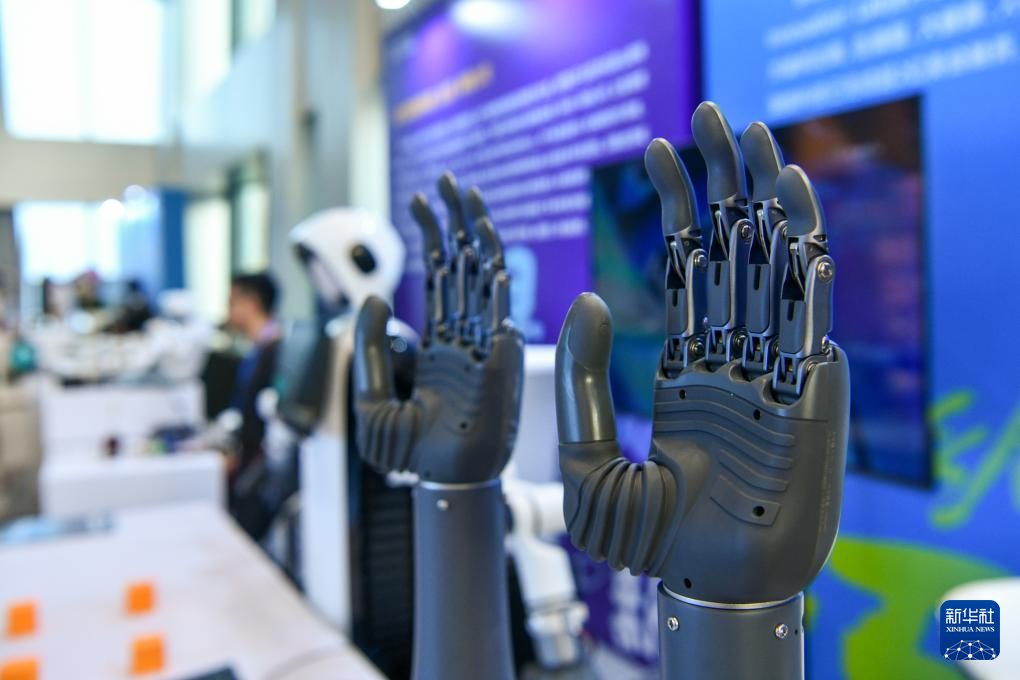 大会现场展示的智能机器人灵巧手产品(8月26日摄)。