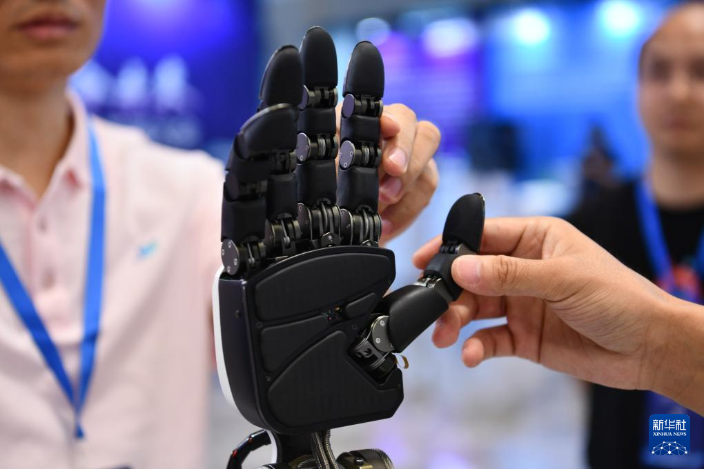 8月26日,观众感受智能机器人灵巧手的关节活动。