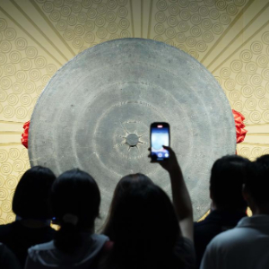 8月24日,人们在位于南宁的广西民族博物馆“壮族文化展”参观镇馆之宝——云雷纹大铜鼓。