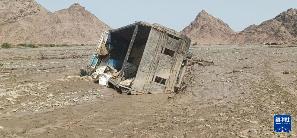 这是8月26日在苏丹红海州拍摄的溃坝洪水冲毁的汽车。
