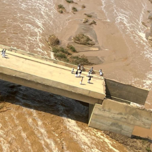 这是8月26日在苏丹红海州拍摄的溃坝洪水冲毁的大桥。