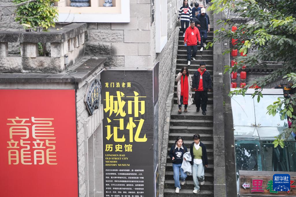 游客在重庆市南岸区龙门浩老街游览(2月14日摄)。