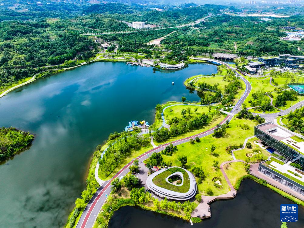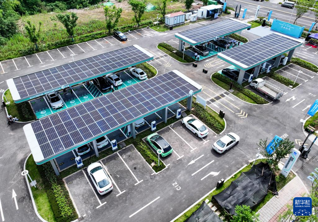 这是6月6日拍摄的重庆市两江新区明月湖超充示范站(无人机照片)。