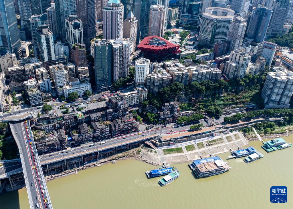 这是8月23日拍摄的重庆中心城区长江、嘉陵江交汇处城市景观(无人机照片)。