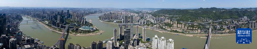 这是8月23日拍摄的重庆中心城区两江(左侧为嘉陵江,右侧为长江)四岸城市景观(无人机拼接照片)。