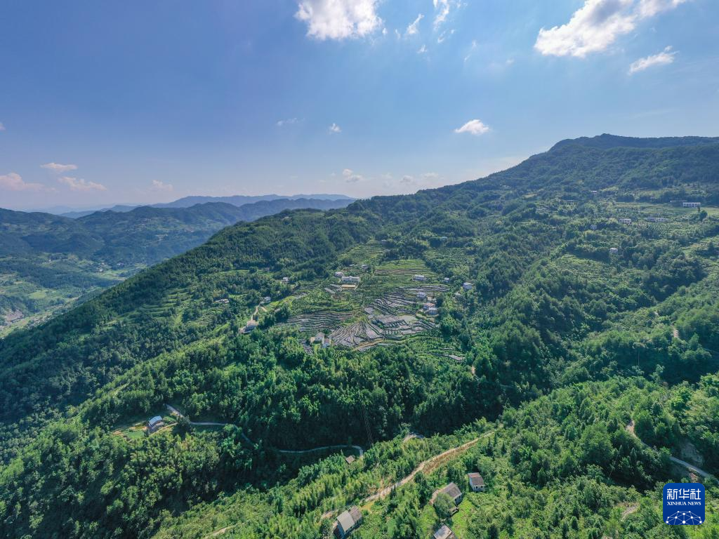 这是8月7日在重庆市开州区温泉镇乐园村拍摄的重庆雪宝山国家级自然保护区崖柏繁育科研基地(无人机照片)。
