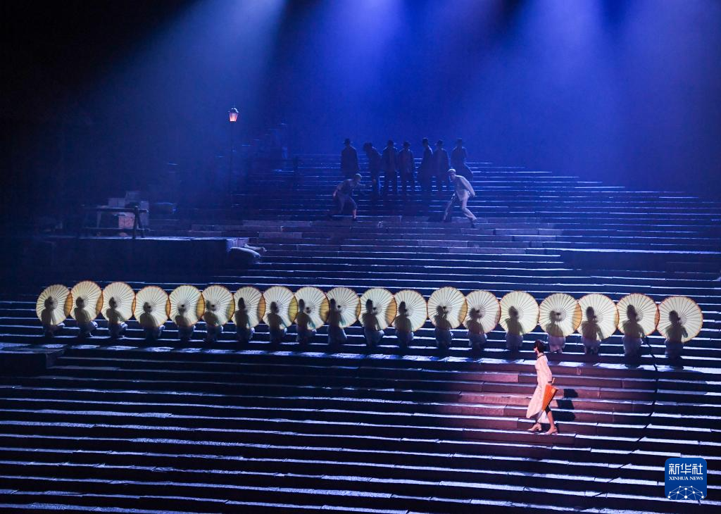 这是2月13日在重庆拍摄的《重庆·1949》舞台剧演出现场。
