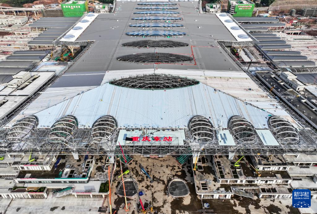 这是8月17日拍摄的建设中的重庆东站站房及配套综合交通枢纽工程(无人机照片)。