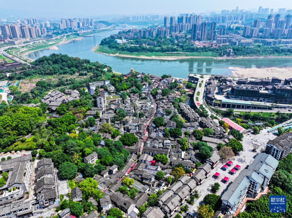 这是4月28日拍摄的重庆磁器口古镇景色(无人机照片)。