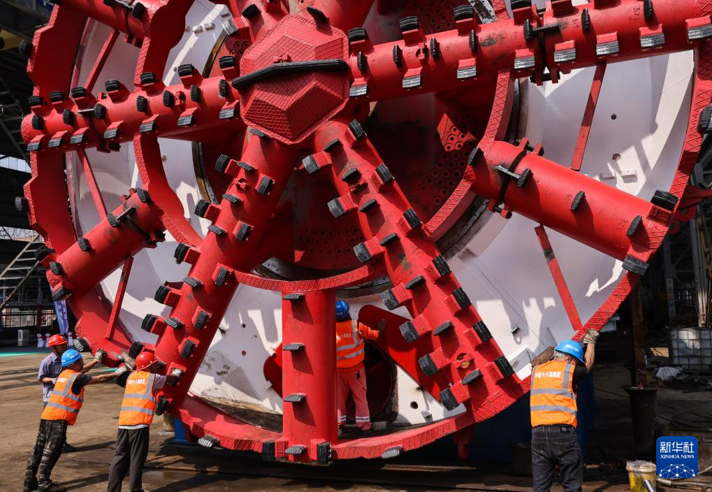 8月27日,施工人员在组装一台经过再制造的大直径盾构机刀盘。这台2010年出厂的盾构机本已到报废年限,经过设备再制造,性能还得到进一步提升。