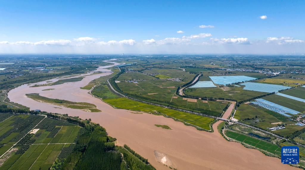 这是7月18日在宁夏石嘴山市平罗县拍摄的黄河(无人机照片)。
