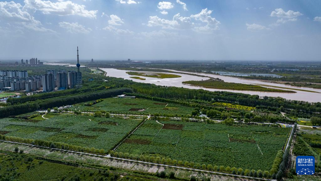 这是8月10日在宁夏吴忠市利通区拍摄的黄河(无人机照片)。