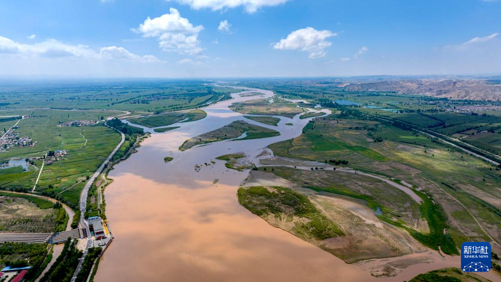这是8月7日在宁夏中卫市中宁县拍摄的黄河(无人机照片)。