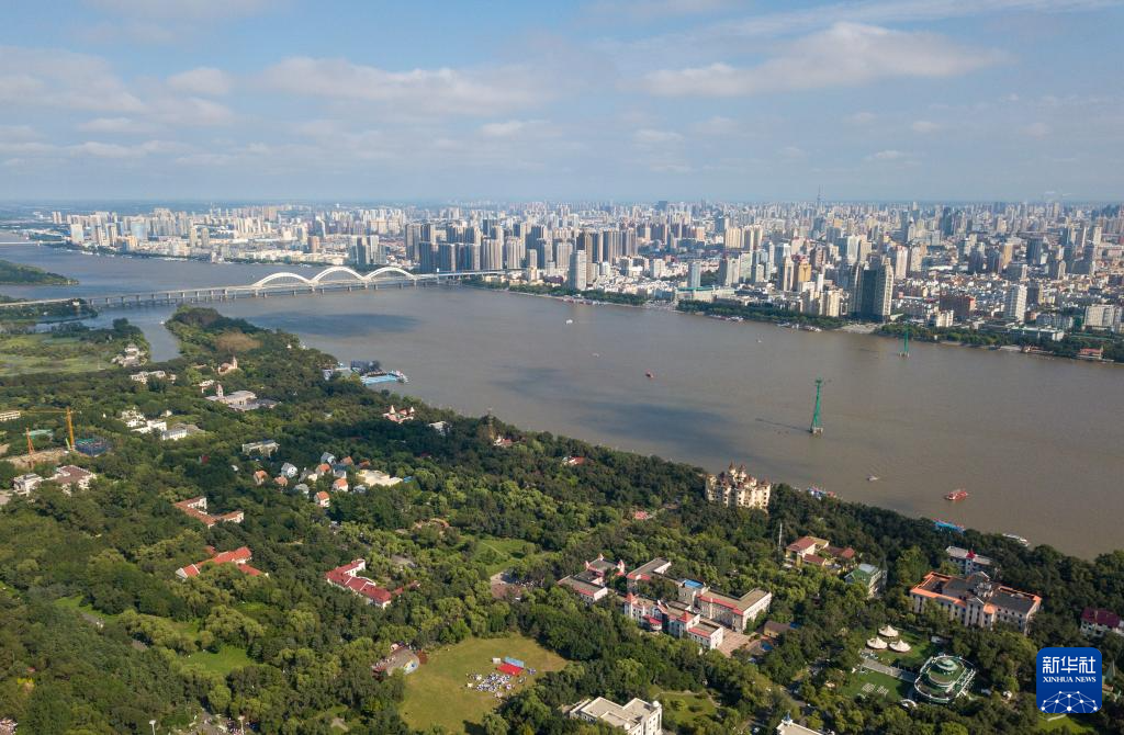 8月20日拍摄的松花江哈尔滨段和太阳岛局部(无人机照片)。