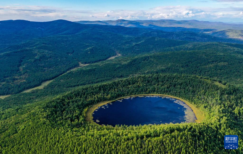 这是8月27日拍摄的黑龙江伊春市上甘岭溪水国家森林公园一景(无人机照片)。