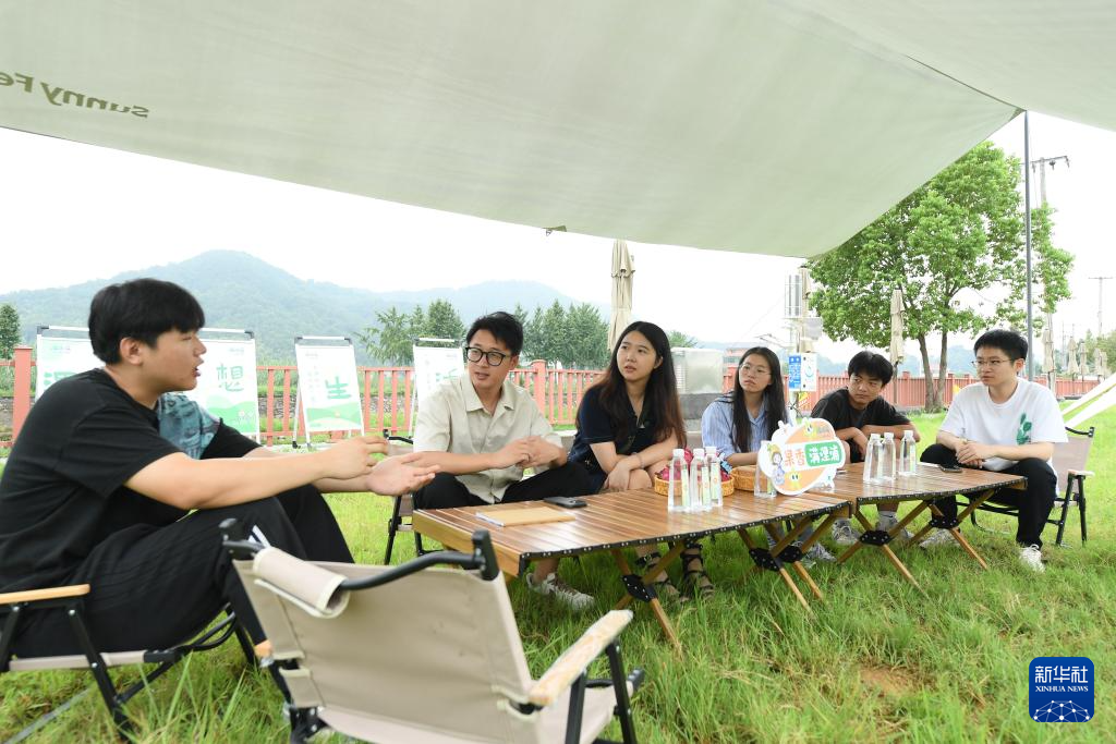 8月28日,在诸暨市浬浦镇,乡镇干部和年轻果农参加沙龙座谈,交流创业故事。