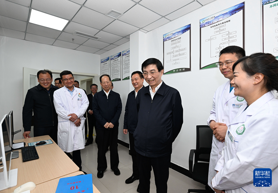 中共中央政治局常委、全国政协主席王沪宁到拉萨、山南就对口援藏等工作开展情况进行调研。这是8月27日,王沪宁在山南市人民医院调研。
