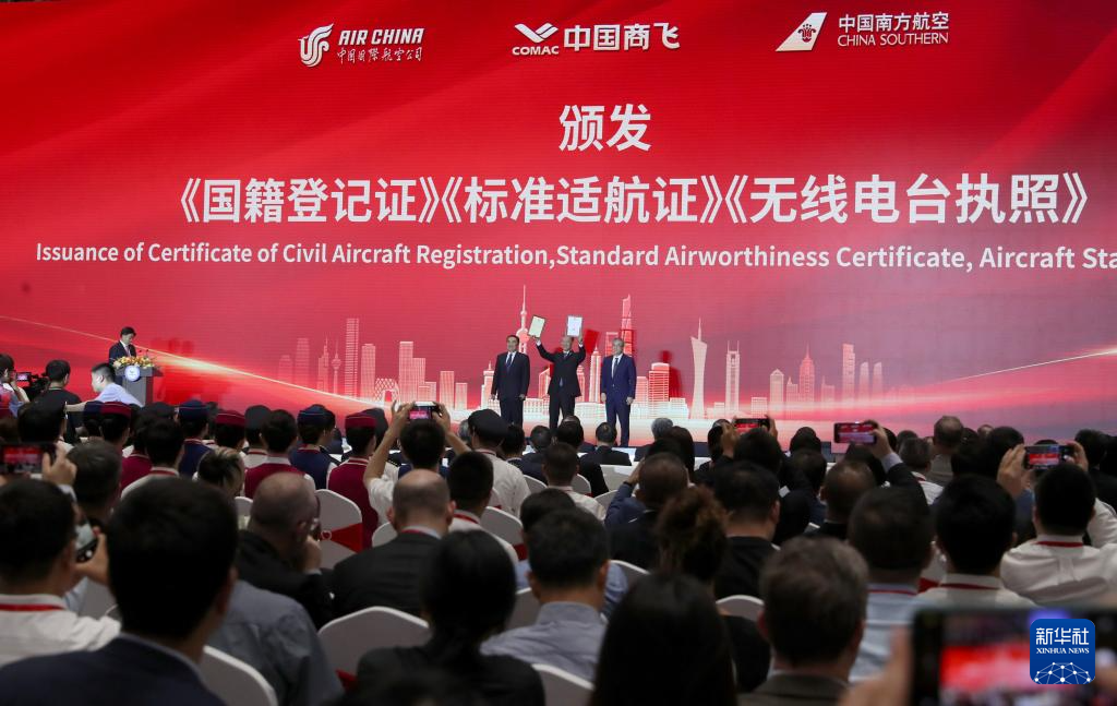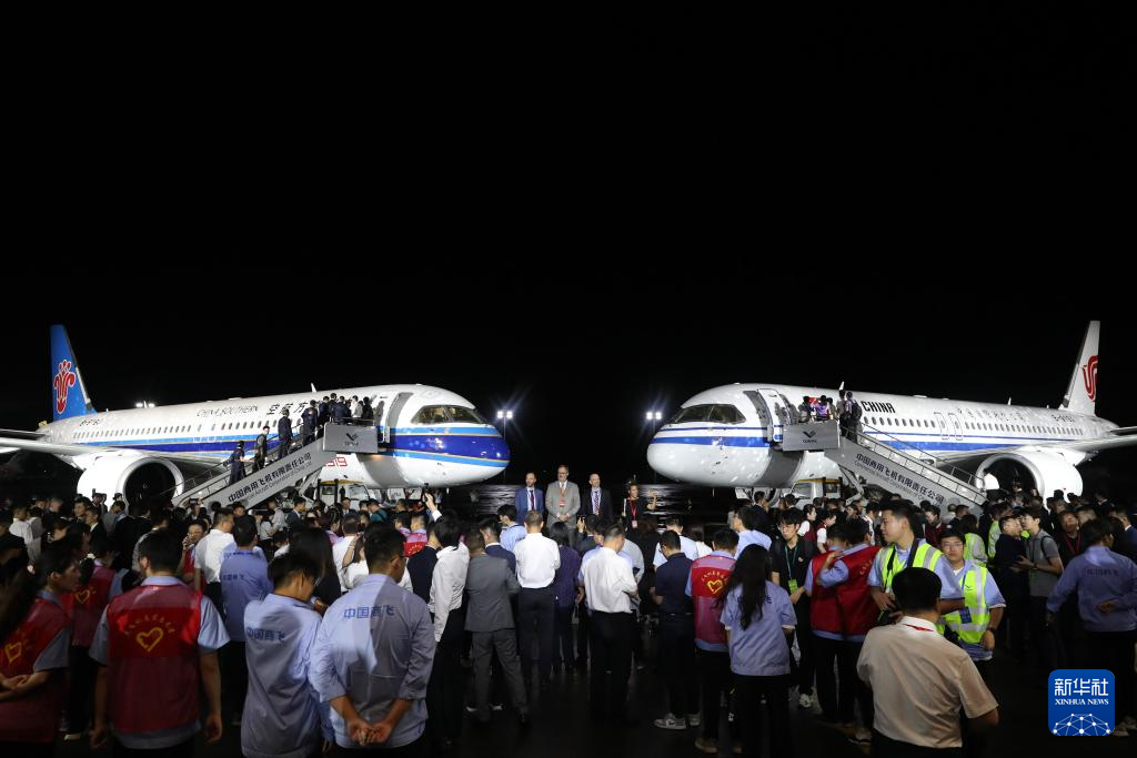 当日,中国国际航空公司和中国南方航空公司在中国商飞总装制造中心浦东基地同时接收首架C919飞机。这标志着C919飞机即将开启多用户运营新阶段。