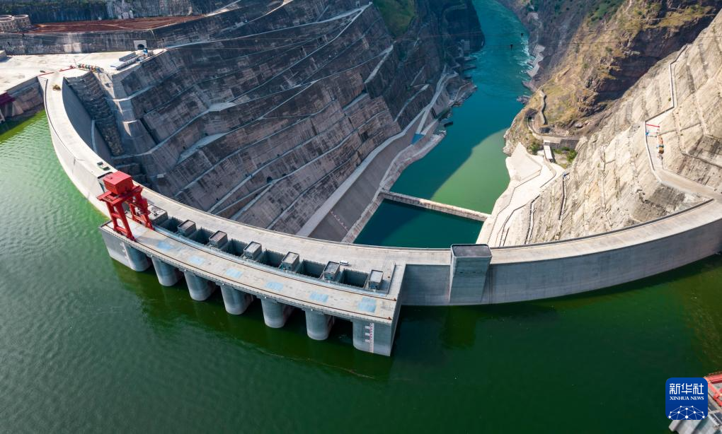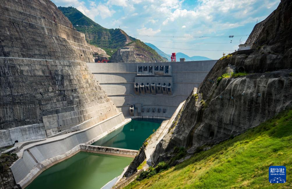 这是8月28日拍摄的白鹤滩水电站大坝(无人机照片)。