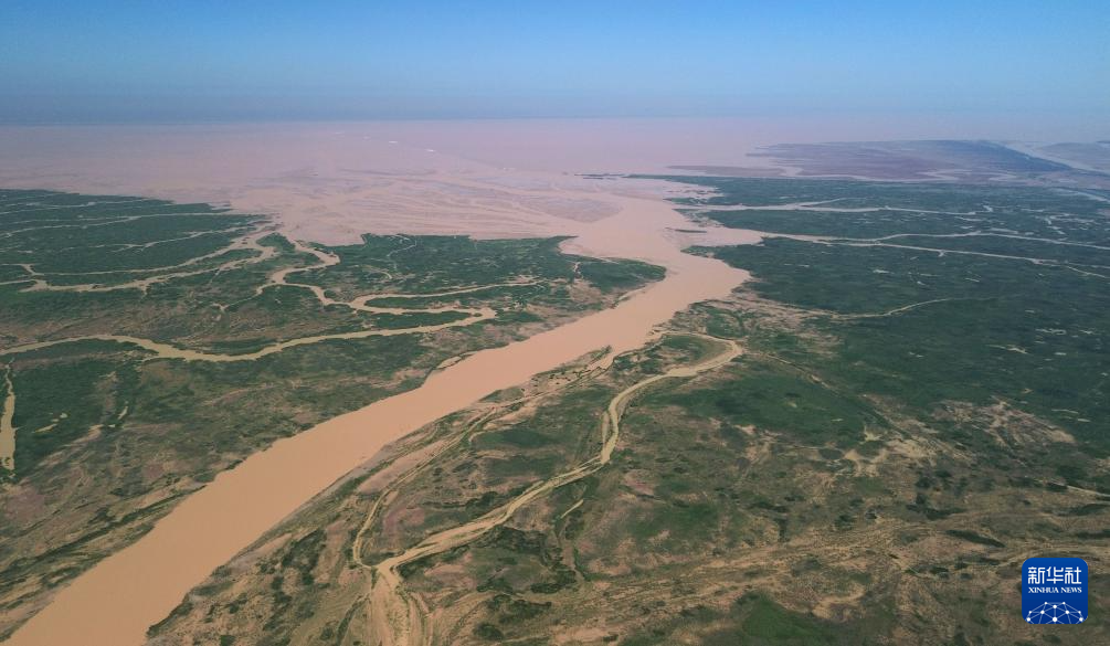 这是8月28日在黄河三角洲国家级自然保护区拍摄的黄河(无人机照片)。