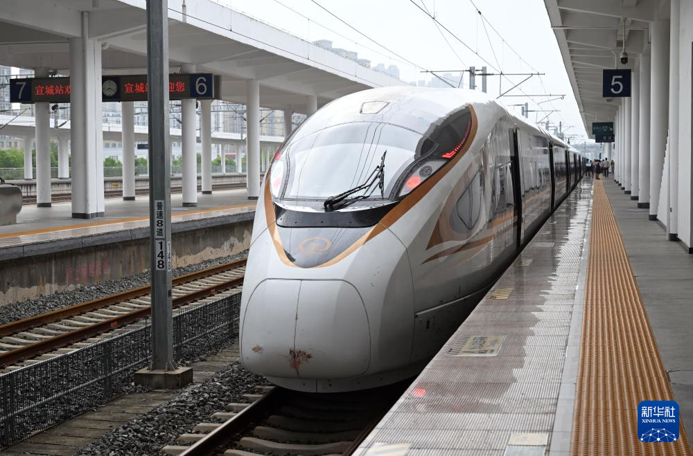8月29日,宣绩高铁首趟试运行列车在宣城站准备发车。