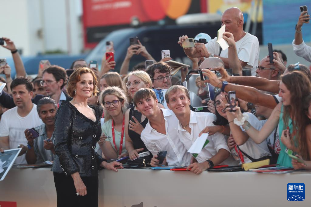 8月28日,在意大利威尼斯,西格妮·韦弗在开幕式后与影迷互动。