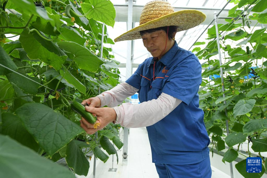 8月29日,村民在“红芯植物工厂”采摘黄瓜。
