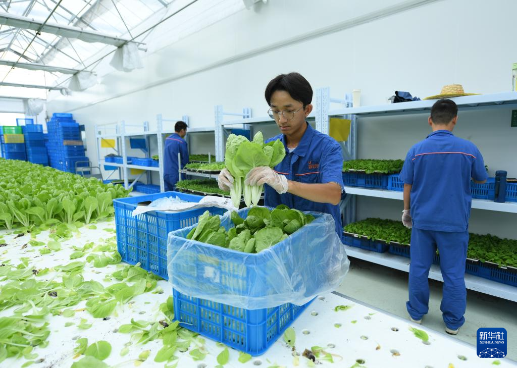 8月29日,工作人员在“红芯植物工厂”采收杭白菜。