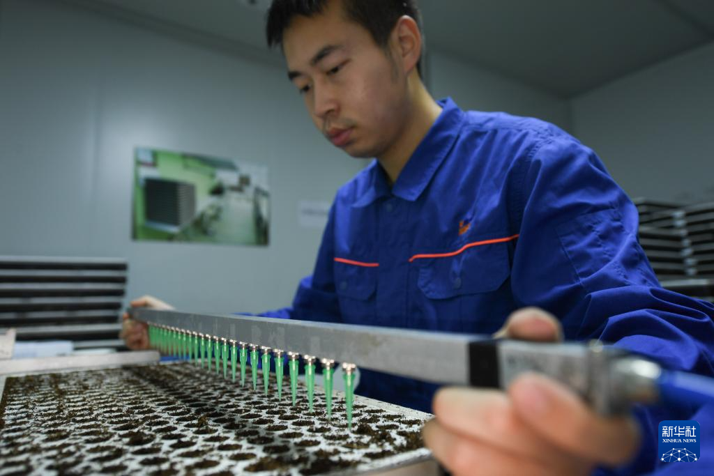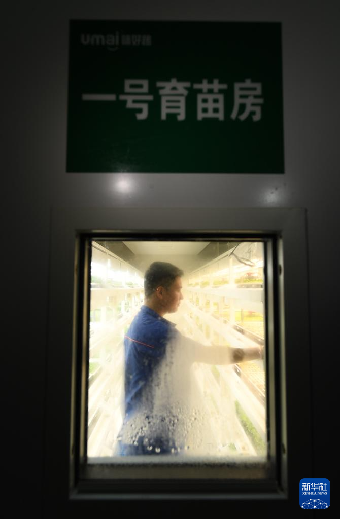 8月29日,工作人员在“红芯植物工厂”恒温恒湿的育苗房内工作。