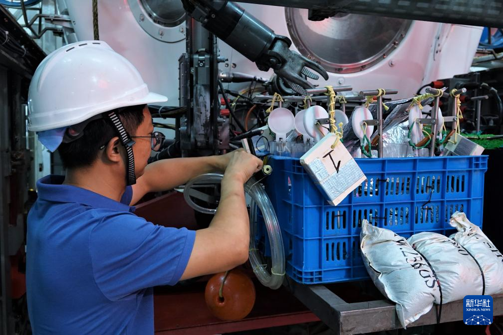 8月29日,“蛟龙号”大深度下潜前日,“蛟龙号”运维保障工程师王向鑫检查“蛟龙号”搭载的作业工具。