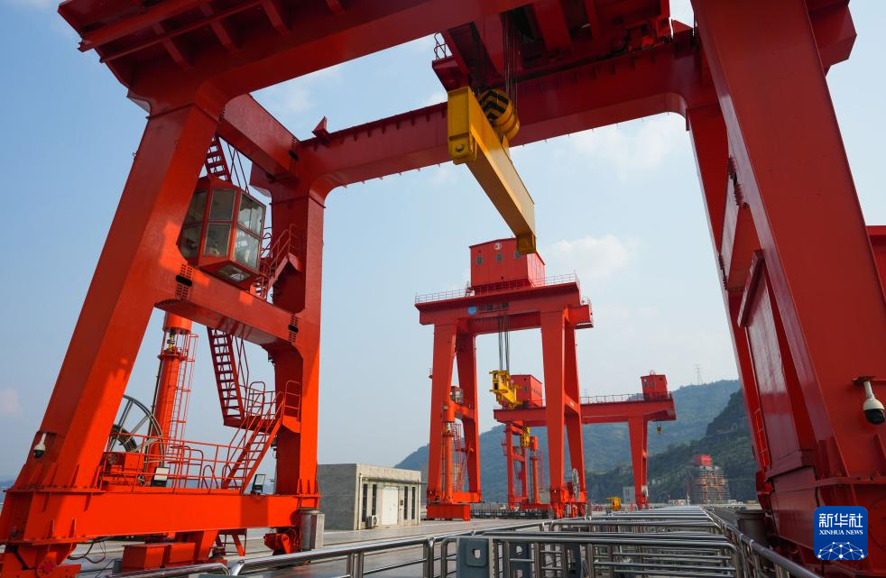 这是8月29日拍摄的向家坝水电站门式起重机。
