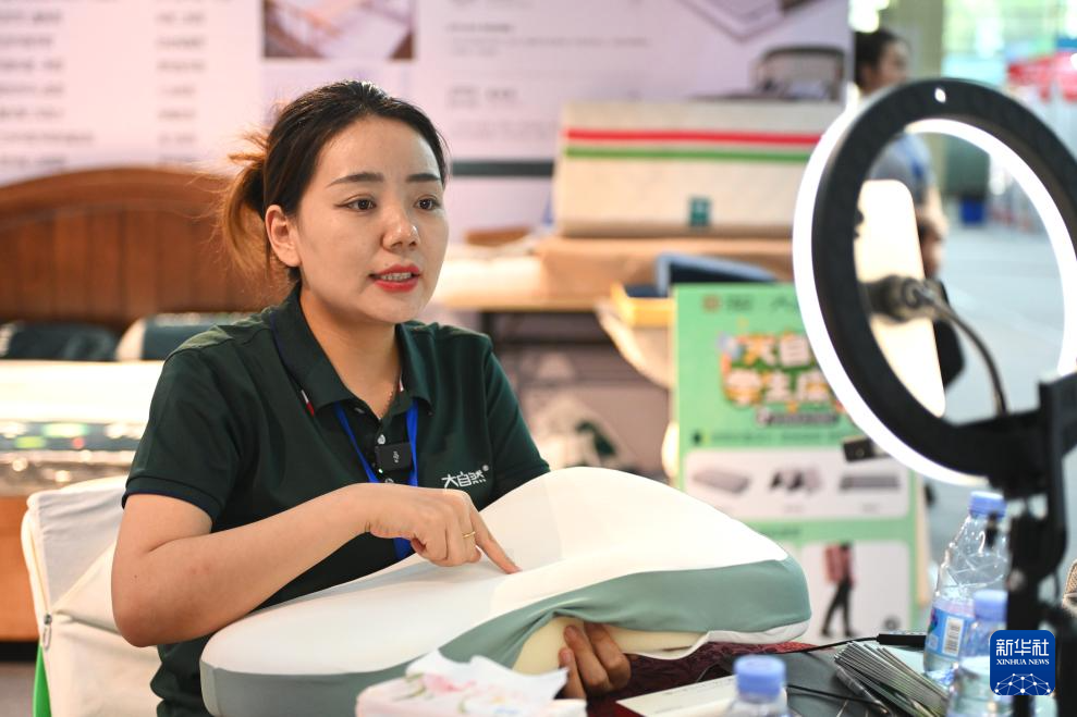 8月30日,工作人员在养老服务业博览会上进行直播。